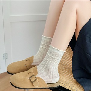 女性用ソックス夏薄いメッシュ中空通気性ストッキング韓国インソリッドカラー多用途ミッドカーフソックスパイルコットンソックス