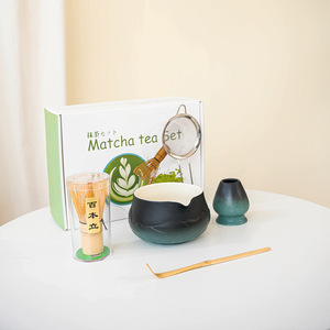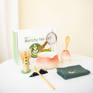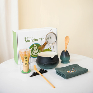 日本製粗陶器抹茶セット風景画抹茶ボウル注ぎ口付きセラミック茶筅7点セットギフトボックスハイエンド