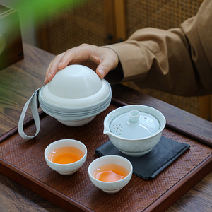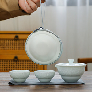 影青户外功夫茶具礼品轻奢防烫泡茶壶陶瓷快客杯一壶二杯旅行茶具