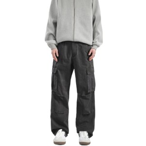 マルチポケットオーバーオールメンズ秋の新アメリカンハイストリートストレートパンツ男性と女性のためのルーズクリーンフィットカジュアルパンツ