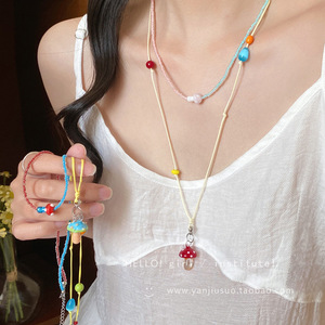 ドーパミンビーズキノコネックレスレディースロングスタイル多用途ホットガール鎖骨チェーンインスタイル新しいパーソナライズされたアクセサリー