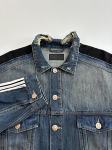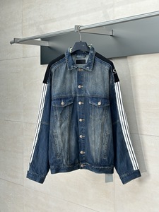 天井品質 25SS パリのトレンディな新しい BLCG ダメージ加工デニム スプライス ジャケット、男性と女性用、同じトレンディなスタイル