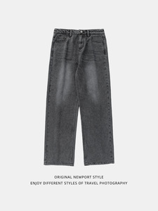 アメリカンレトロウォッシュ加工ダメージワイドレッグジーンズメンズ秋新作ベーシックルーズストレートパンツトレンディブランドパンツ