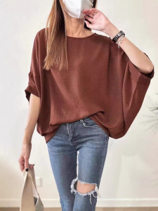2025 新しいクロスボーダーアイスシルクプリーツフライングマウススリーブ大きいサイズの女性のルーズカジュアル痩身女性のトップス卸売