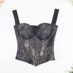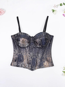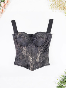 取り外し可能な幅広ショルダーストラップと胸を引き締めるマーメイドスカート付きの外側に着用できるグリッターメタリックジャカードフィッシュボーンシェイプトップ