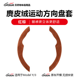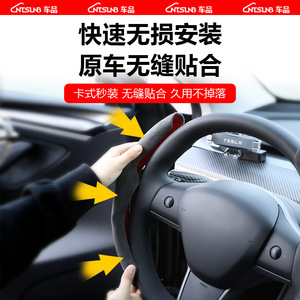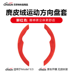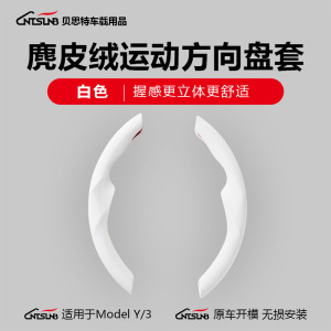 テスラモデル 3/Y ステアリングホイールカバー、快適な車内装飾アクセサリー、スエードレザーハンドルカバーの改造に適しています。