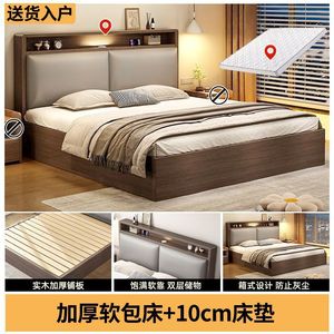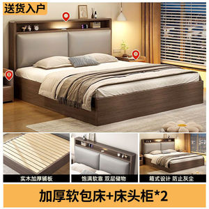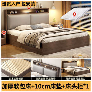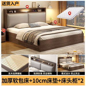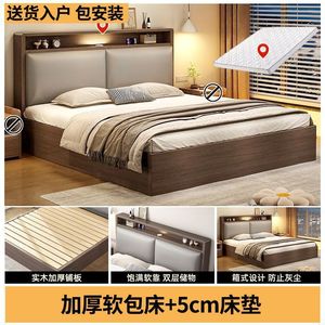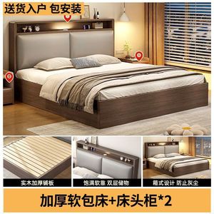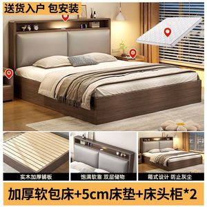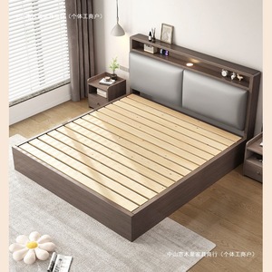 無垢材ベッド ダブル 1.8x2m マスターベッドルーム モダン シンプル ホーム 1.5m 小さなアパート レンタル ルーム 1.2m シングルベッド