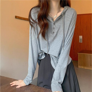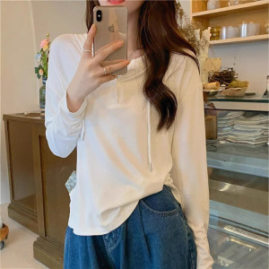 2025秋季薄款连帽卫衣女韩版小众时尚百搭气质长袖T恤女洋气上衣