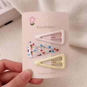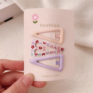 新しい韓国子供用夏ベーシックチェック柄トライアングルBBクリップ女の子用コントラストカラー花柄3パックサイド