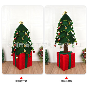 跨境圣诞节礼物伸缩圣诞树礼物造型创意摆件带灯橱窗场景布置摆设
