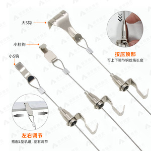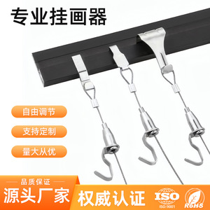 トラック絵画ハンガー、ワイヤーロープフック、調節可能な絵画フック、可動トラック絵画展示ギャラリー吊り下げミラーライン