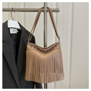 ボヘミアンスタイルタッセルバッグファッション大容量ショルダーバッグ2025人気の新しいニッチインレトロレディースバッグ