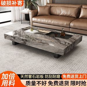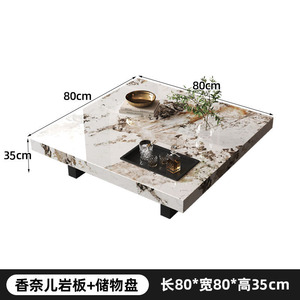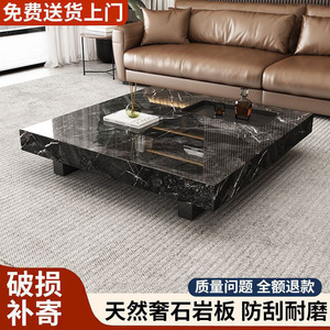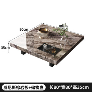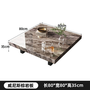 威尼斯棕岩板茶几意式极简轻奢高端客厅家用正方型悬浮茶几桌
