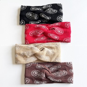秋と冬の厚みのあるニットクロスヘッドバンド二層ペイズリーカシューフラワーヘッドスカーフスポーツ防寒暖かい弾性ヘッドバンド