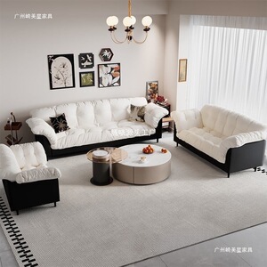 レトロなファブリックソファリビングルーム新しいダブルストレート列小さなアパートの寝室レンタルルーム怠惰なモダンなシンプルなソファ