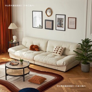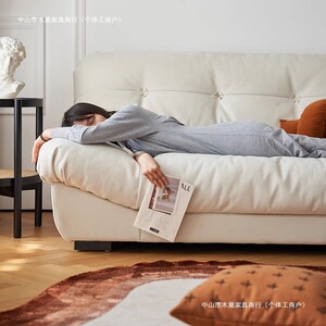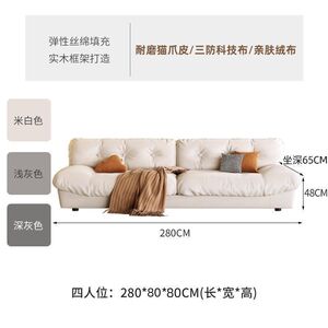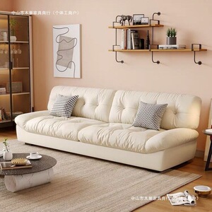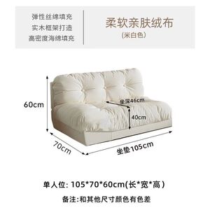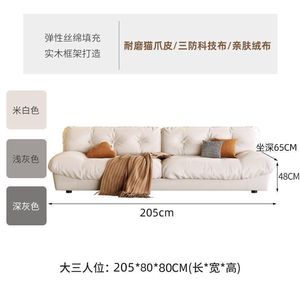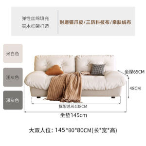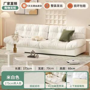 Yunduo ソファ新しいモダンなシンプルなクリームスタイルのリビングルームの小さなアパートストレート列ダブルまたはトリプル怠惰なファブリックソファ