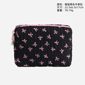 リボン付き化粧ポーチ 大容量 かわいいハンドバッグ ポータブルトイレタリーバッグ 小銭入れ 化粧品収納バッグ