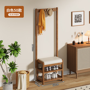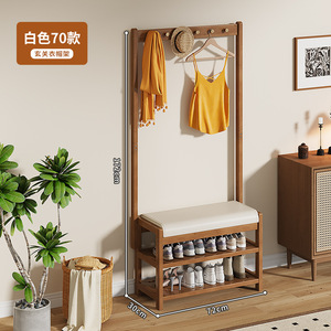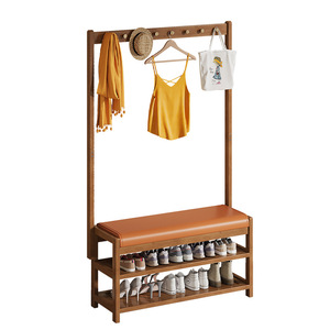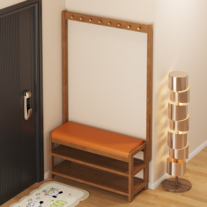 玄関の靴交換スツール、座って靴を履けるスツール、布張りのロングベンチ、玄関のコートラック、靴ラックとスツールが一体化
