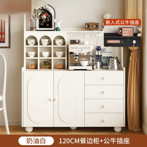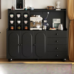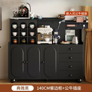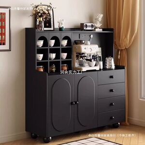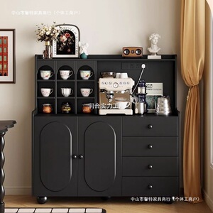 ライト高級フレンチブラック無垢材サイドボードティーキャビネット小さなリビングルームバケットキャビネットソファサイドキャビネットコーヒーマシンキャビネット