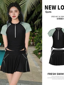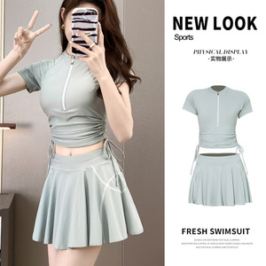 女性用スプリットスポーツ水着、平角スカート風ツーピースセット、Tシャツ、女子学生用日焼け止め水着