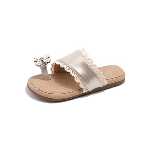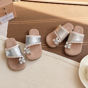 インフレンチラインストーンスリッパ 2025 夏の新韓国スタイル女の子レースエッジつま先プリンセスシューズビーチサンダル