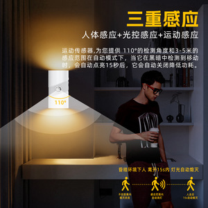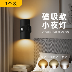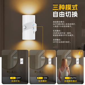 クロスボーダー新製品ウォールランプ磁気誘導ナイトライト3色の光効果寝室のベッドサイドパンチフリーLED照明