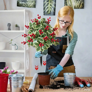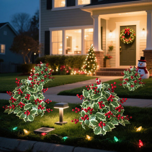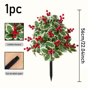 国境を越えて人気の高い、クリスマスの葉と赤い果物の模造品、地面に差し込む装飾、屋外、家庭、庭の装飾、緑の植物、造花