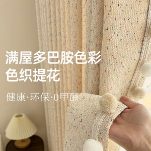 儿童房卡通可爱雪尼尔遮光加厚高档卧室窗帘布糖豆彩虹豆女孩房间