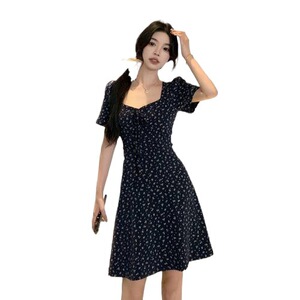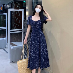 大码胖mm夏季小众设计感碎花连衣裙短裙法式气质显瘦中长裙子女装