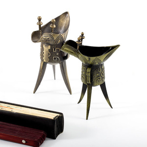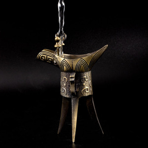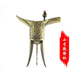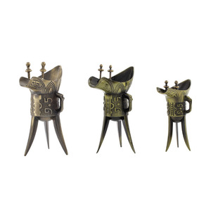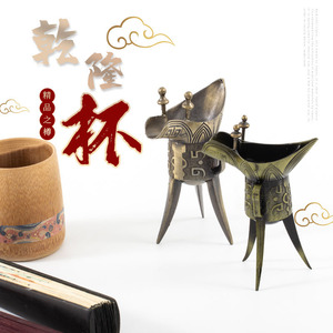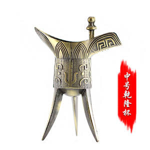 精致仿古三脚乾隆杯大中小号仿古酒杯道具摆件复古金爵杯工艺品