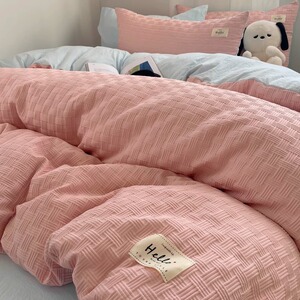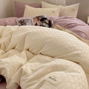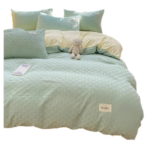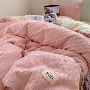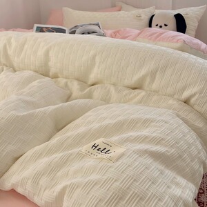 小さな新鮮な二層糸洗浄綿ベッド 4 点セット クリーム風キルトカバー 学生寮のベッドシーツとボックスシーツ 3 点セット