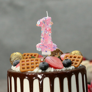 国境を越えたAmazonの新しいピンクのスパンコールDIYクリエイティブ手作りキャンドルケーキデコレーション1歳パーティー用