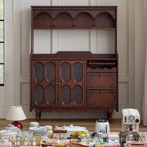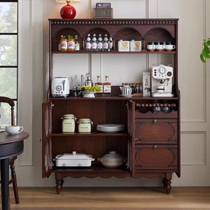 法式实木餐边柜 家用客厅靠墙一体储物柜餐厅复古收纳边柜茶水柜