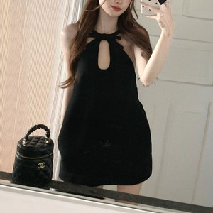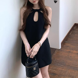 2025年新作夏スリムフィットハイエンドカットシンプル気質ホルターネックドレス