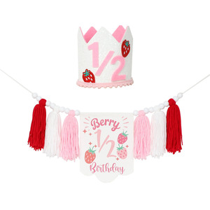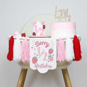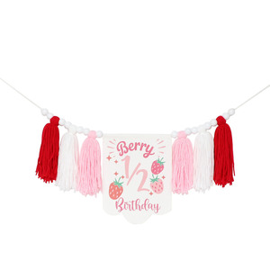 インボヘミアンウッドビーズタッセルバナー、イチゴの半年バースデータッセルバナー、パーティー誕生日デコレーション