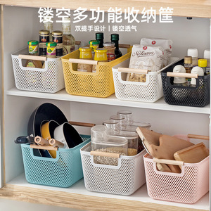 クロスボーダー木製ハンドル収納バスケット収納バスケット雑貨プラスチックバスルームベッドサイドデスクトップキッチン屋外フルーツ収納ホーム