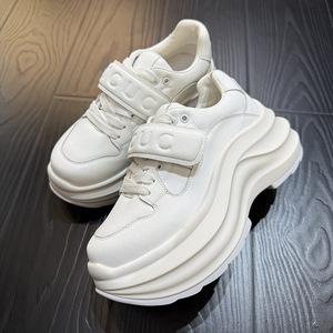 2025秋季白色魔术贴厚底老爹鞋真皮百搭时尚休闲小白鞋女增高显瘦