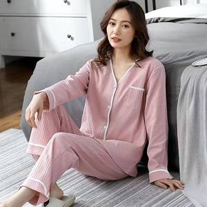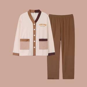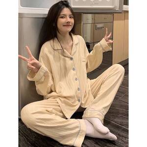 女性用パジャマ、秋と冬の長袖カーディガン、ゆったりとした大きいサイズの気質、春と秋の薄いホームウェアセット