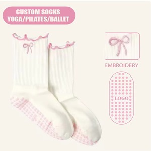 顧客ロゴ刺繍リボンミッドチューブ接着剤滑り止めヨガソックス外国貿易ソックスピラティスソックス