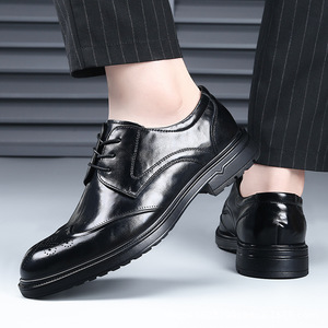 本革紳士靴、ビジネスハイエンド新作ブローグ彫刻通気性カジュアルソフトソール多用途英国フォーマル紳士靴