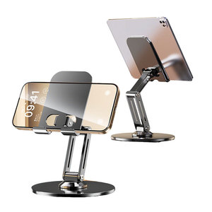 ドラマ視聴、ビデオ撮影、ライブブロードキャスト用のクロスボーダーオールメタル携帯電話ホルダー、怠け者向けのデスクトップ折りたたみ式高さ調整可能な携帯電話ホルダー