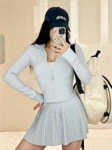 LULUオリジナルレーベル同型バーシティプリーツスカート レディース 速乾テニススカート ハイウエスト 露出防止 夏