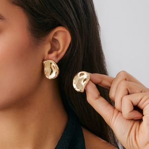 ヨーロッパとアメリカのクロスボーダージュエリーデザインメタルスレッドプリーツイヤリングインパーソナライズされた不規則な幾何学的なペンダントイヤリング