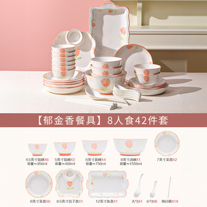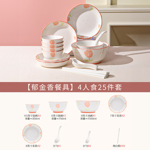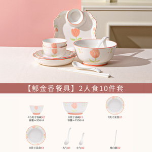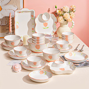 ins风小清新碗碟餐具套装高颜值家用釉下彩陶瓷餐具套装乔迁礼品