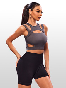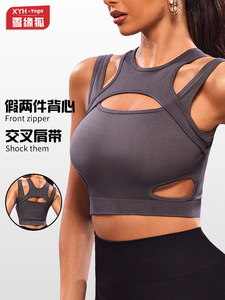 シームレス偽ツーピースノンワイヤースポーツブラ女性用耐衝撃プッシュアップクロスストラップランニングフィットネスヨガトップ