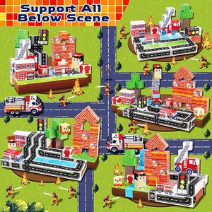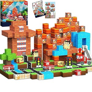 跨境亚马逊爆款 消防员磁力方块积木套装 益智3D立体拼装积木玩具