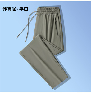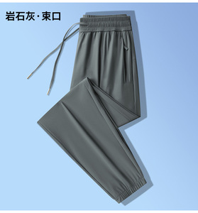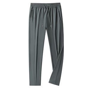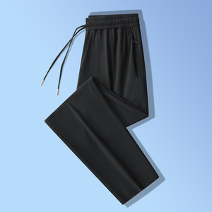 メンズ中青年向けアイスシルクカジュアルパンツ、薄手ストレートレッグ、裾絞り、速乾性、通気性、ゆったり、大きいサイズ、軽量スポーツパンツ