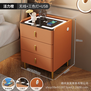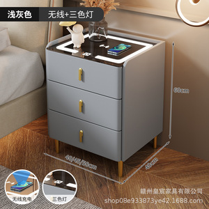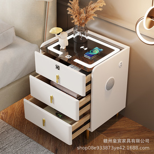モダンでシンプルなスマートホームベッドサイドテーブル多機能ワイヤレス充電ライト高級インターネット有名人スマートストレージ寝室収納キャビネット