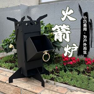 柴火炉子户外折叠无烟便携式火箭炉家用加厚火箭炉柴火炉