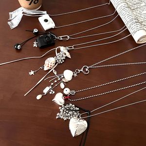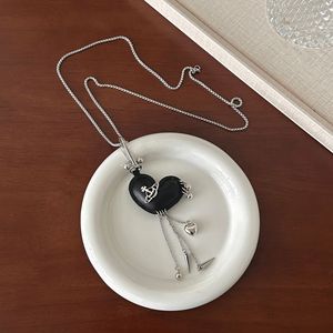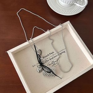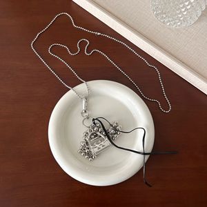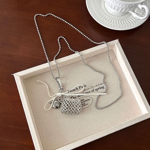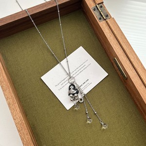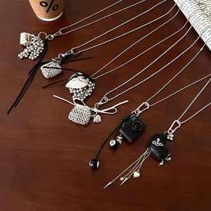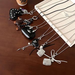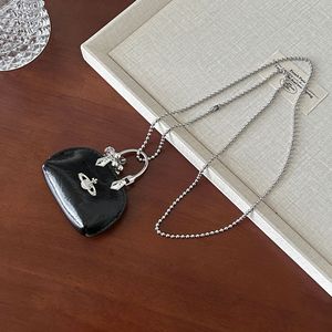 ダイヤモンドがちりばめられたラブレザーバッグペンダントロングネックレスレディースニッチデザインファッショナブルで多用途なセーターチェーン